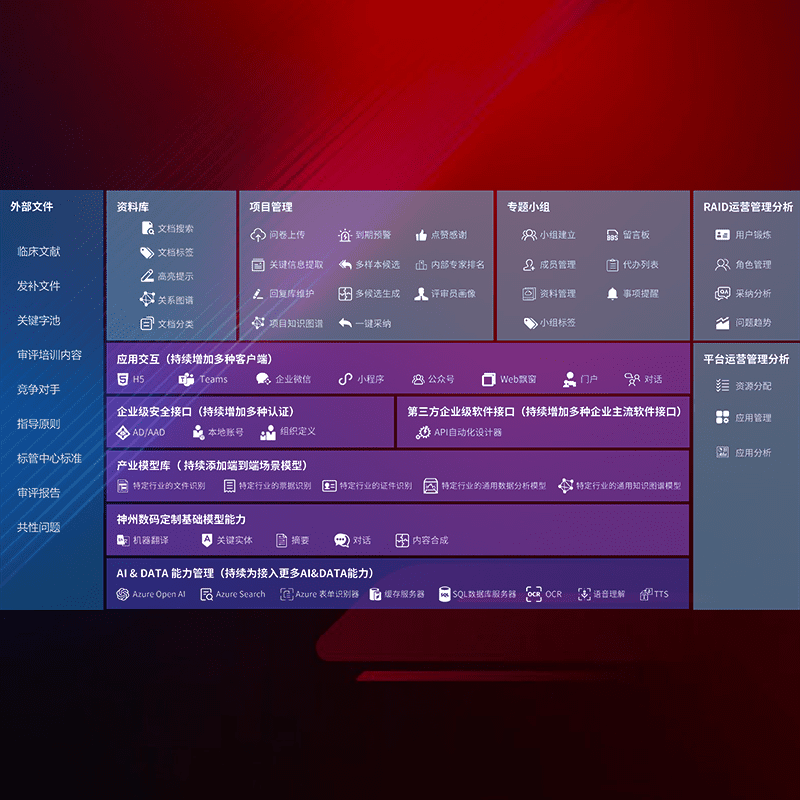 医疗器械产品上市前,,,,要熟悉严格与繁复评审标准,,,,整理分析监管机构指导文件中的海量信息。。。。企业急需一个智能化解决方案,,,提升知识管理效率,,,,提高评审通过率,,以提升其市场竞争力。。